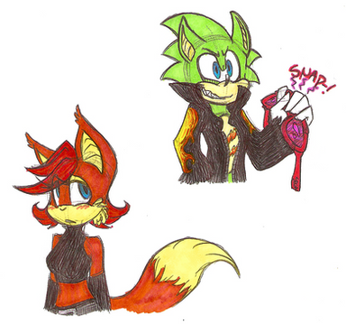 Oh man XD this is crazy, Poor Thell, Sonii does NOT look happy over how he tried to steal her food! >.< I loove the bright colors man, this looks SO lovely! Thank you so much for entering