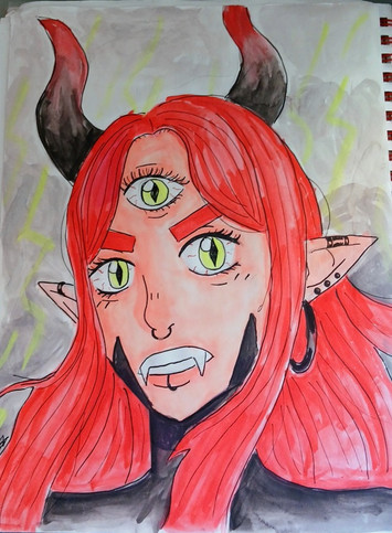 #demon #horns #blondegirl #blondehair #demongirl #digitalart #fangs #kohinoor #monstergirl #hentaigirl #fanfictionstory #white_eyes #fangsgirl #hornsgirl #hentaiecchigirl