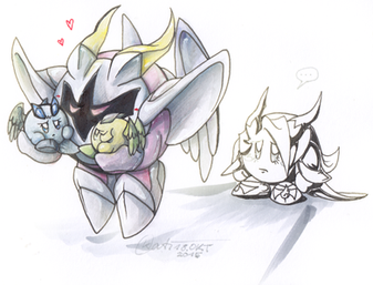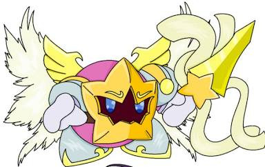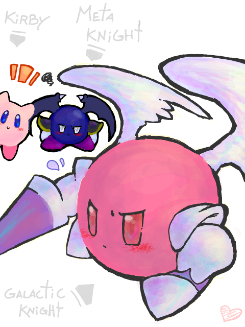 Okay, so I'm running with this now. In the AU I've accidentally created, Galacta Knight takes the place of Meta Knight.He's the leader of the Angelics, pure-hearted beings who resemble various forms of Angels, and they fight to protect those who cannot protect themselves.