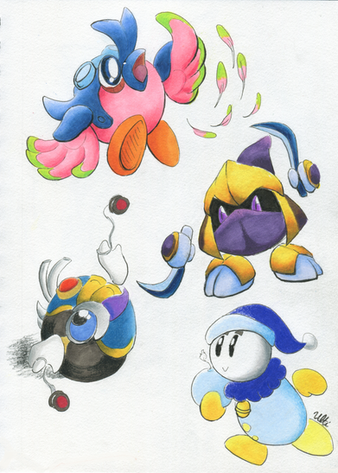 Meta Knight, on the other hand, is a Demon Lord in this AU, and his troup the 'Meta Knights' are his minions still. They were sealed along with him in the ancient past, by Galacta's ancestor.