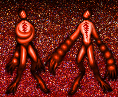 Creativity alert. The lines on their legs give a great tridimensional look. I just wish the background was darker so it would fit the artwork mood more.