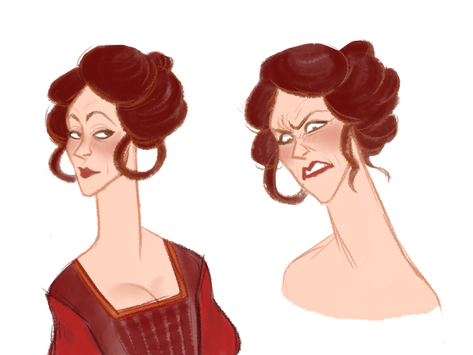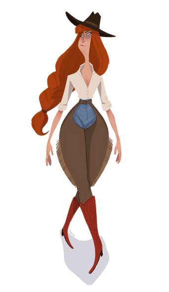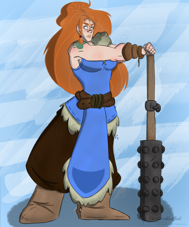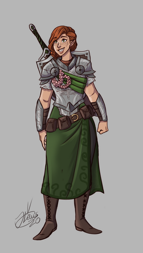 Love the expression and the outfit. The palette has a nice balance too, all those warm browns and then those nice pops of blue and green.
