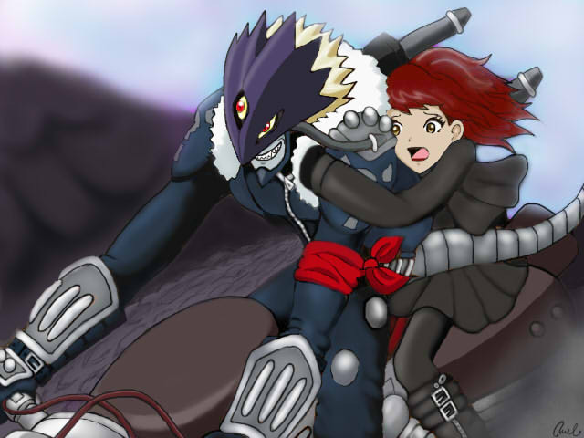 Gracias *-* y si, extrañaba dibujarlo *o* y ahora ando haciendo una escena en la que michiyo le tapa casi los ojos, y el ( en su BM) volando, porque Michiyo le teme a las alturas, y de nervios y miedo le tapa los ojos para sujetarse de el XD ( ni cuenta se da ella de eso) y solo ve con el ojo de su frente XD y como a el no le es suficiente asi la vision, como que se van a estrellar D:
