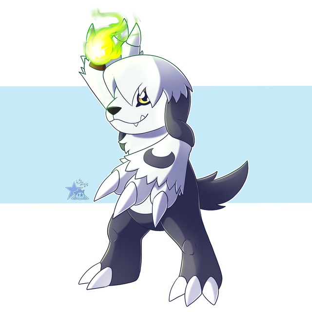 Is he a white Chihuahua digimon in a robe? ..... with a bone for a weapon?