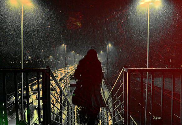 Creative and artistic work! I love how the background has a busy pattern and the figure is quiet.