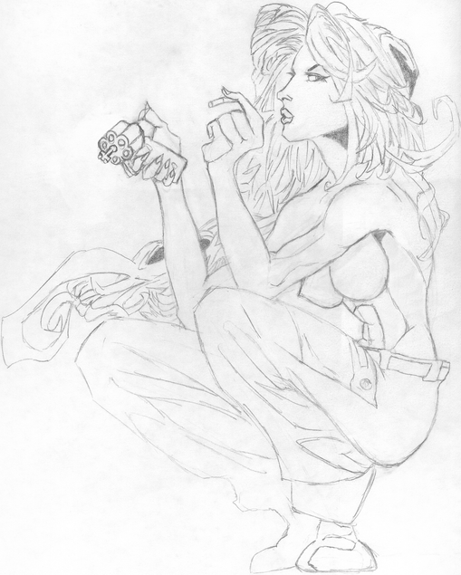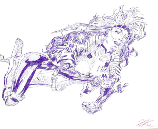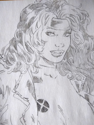 My recreation of what I would guess is a well-known image of Rogue from Marvel Comics' X-Men. My favorite female team member.This is very old (20+ years?) and the first Rogue I ever did that was worth saving, and I did a lot of her. This is another one I really surprised myself with back then and am still surprised looking at it now because I far outdid myself with it. This was better than anything I did way back when.