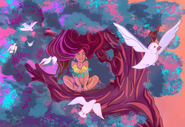 Really cool - Love the flow of her hair and the bubbles trailing, too. Great work!
