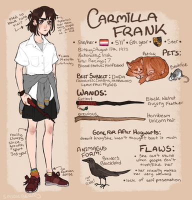 Other: Her both parents and siblings are all alive and live around Europe ( she's originally English but moved away since English white witches like to kill black witches lmao ) and she visits them.