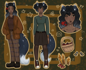 About: Sam lives in a woods in her cabin ( somewhere in the switzerland countryside ). She loves be in the nature and take long walks in her wolf form or by riding her Icelandic horse. She has deep connection with animals and she can understand them better than a normal person ( it's one of her powers ) and she's usually covered in mud since she's not really clean freak and she spends most of her time in the forest. She's really interested in all kinds of herbs and she likes to collect them and study them. She loves to get cozy in her cabin, drink tea and read a good book. She usually hunts in her wolf form and eats meat as well. She's a good archer as well, but rarely uses it on a real cause. It's kind of a self defense if someone attacks her. She's pretty weak in battles because she has never really trained herself. She likes to live her peaceful life in the woods.