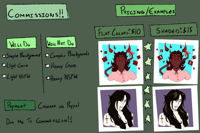 Updated Commission InfoI won’t do NSFW, animals, mechas and machines. (Exception being robotic parts like, Vriska’s arm or Lucio’s legs)