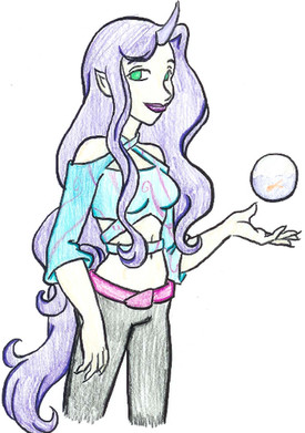 Adorable! The hand looks sort of deformed to me, like... I can't explain it. Meh. Otherwise I love the coloring, especially on the hair and the eyes. It looks awesome, Wilted.