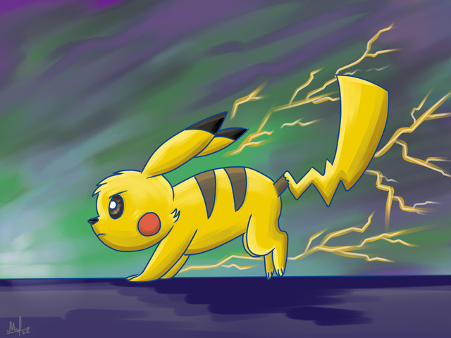 Got a scanner a few weeks ago, didn't try scanning until later on. I thought of using Gimp to color this, just to see how it looks and it looks pretty good. Not liking how the lines are though =/ It was way better when I colored my drawings on my sister's computer >.< Probably won't try coloring another drawing on Gimp, don't want a lot of my deviations looking like this. So, this was a test drawing.Had the urge to draw Pikachu one day and it looked alright but the original Pikachu is way better than this XD