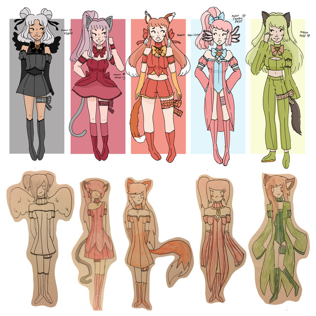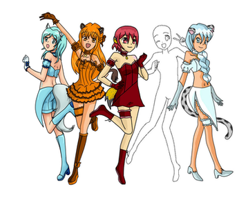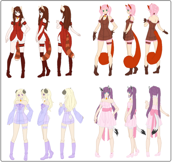 So I changed Raichi's name to Reed and since the poll I did said a lot of you wanted her to be related to Daikon somehow she'll have to be half alien. So here she is in her Mew form and in her Alien form plus a sort of color key. I'll probably be up dating this with an actual character sheet sometime....maybe....