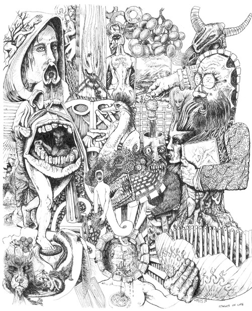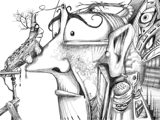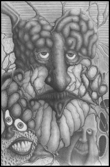 Paper makes all the difference in the world, doesn't it. I am amazed how much difference it makes in the final result and in the enjoyment as I draw. Texture, tooth, color, etc., can make such a difference. I don't think I would have noticed the graphing unless you mentioned it, though. This is an awesome drawing. So metaphoric, and so much style, composition, detail, etc., as usual. You are awesome.