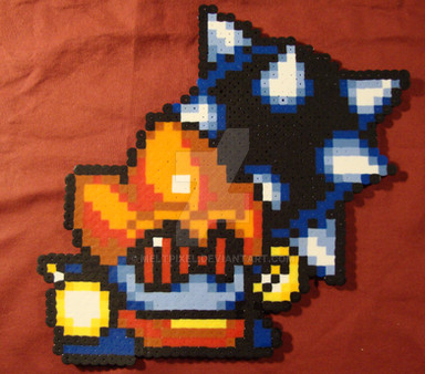 The third entry in the week is Mega Manectric! Shout out once again to Noscium for his awesome spritework. He's been my go-to for the Kalos Pokémon. Manectric is interesting. I always thought the idea of an electric wolf/dog thing was unique but not too surprising given the Pokémon series' tendency to make memorable creatures. The mega form takes the original design elements and supercharges them giving the Pokémon an almost Super Saiyan haircut.As expected from an electric type, Mega Manectric's palette is mostly yellow thanks to its sharp mane of hair. The shades were easy to reproduce using Yellow and Pearl Yellow beads. My lighting got a bit weird but the body is made up of Dark Blue and Light Blue beads. The claws are a mix of Red and Cranberry. The difference in shades strangely enough shows up great in real life but not in the picture mostly due to the lighting. I think the original palette is still accurate. This was a big sprite so it took some effort to iron. I had to move quickly so my iron wouldn't lose heat in the larger sections.