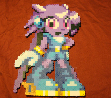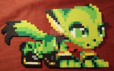 Finally, if you want to give yourself some good tools, the Spriter's Resource is great place to track down sprites from games. I typically open the image files in MS Paint, turn on the grid and zoom in as far as it will go. That should let you pick apart the color palette and figure out which shades and combinations you want to use. There are a handful of good beading tutorials floating around and I've found the Masking Tape Method to be the most consistent when it comes to fusing the beads to get the flat look like my perlers have.