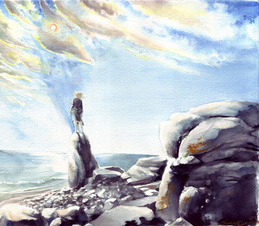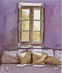 A bit more wet-on-wet. It made for a very nice, even background, but I didn't wait long enough to put in the floor, so it bled, and I tried to correct it, with tragic results. Still, I love the impression of light it gives.Related content