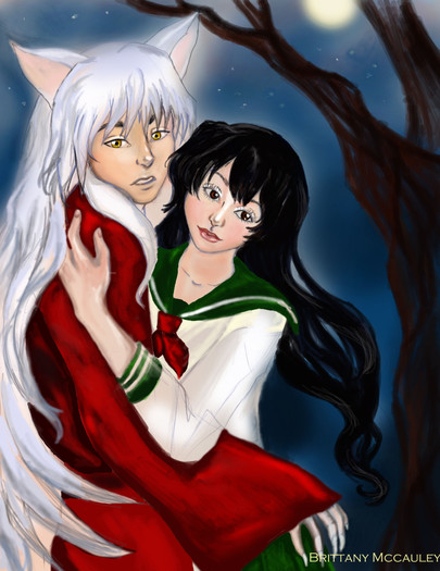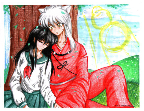 I actually find this rather cute, despite the fact I don't care too much for InuYasha fanart. This is very nicely colored, and the pose you put them in, while not overly original, is cute and slightly heart warming. The way InuYasha crosses his arms stiffly and still manages to bend over while she smooches him is very adorable. I also like the snow setting! That isn't too popular in drawings like these. The legs seem a bit out of proportion, but that could just be the skirt or something. It's a bit hard tell. Good one! The only one I like besides the other fanart I saw of InuYasha jumping naked out of a hot tub, lol.