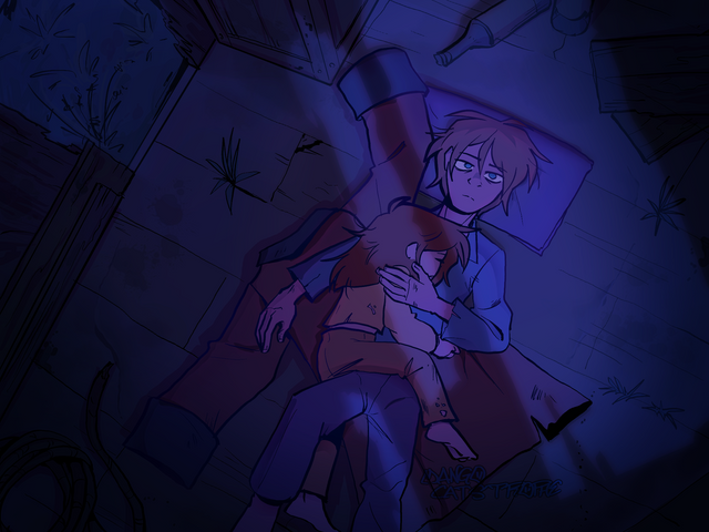 Some random scene based on the past of my oc Edmond, dang! i really missed putting color on my illustrations; v ;