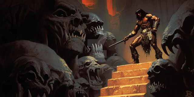 WOW! This is amazing. Not just as a fantastic representation of Conan and the Hyborian style but as an artwork itself. Absolutely LOVE this.