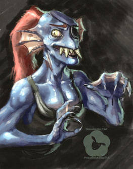 i did! a digital art!but yeah. i had drawn undyne in my sketchbook and i wasnt happy with how generic she looked so!! i changed the whole design drastically and got this :3