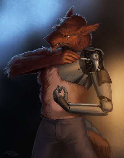 The result of listening too much dubstep in these couple of days. Say hello to Radon's cyborg arm!I've actually had partly-cyborg-Radon on my to do -list for a long time, but I've always considered myself very bad at drawing anything machinery-like. Actually I had no idea what I was doing while drawing the arm, but at least it looks metallic so I'm happy. And yes, I had to include some Terminator-shine there.