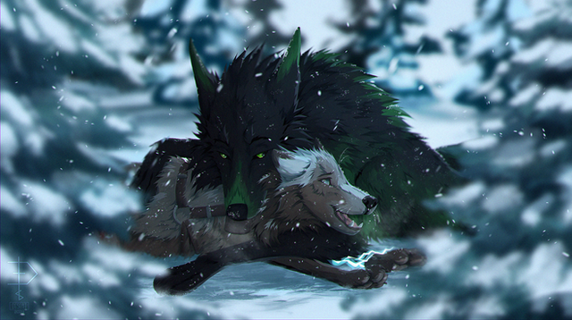 #blizzard #canine #snowstorm #couple #digitalart #wolfcharacter #dogcharacter #caninecharacter