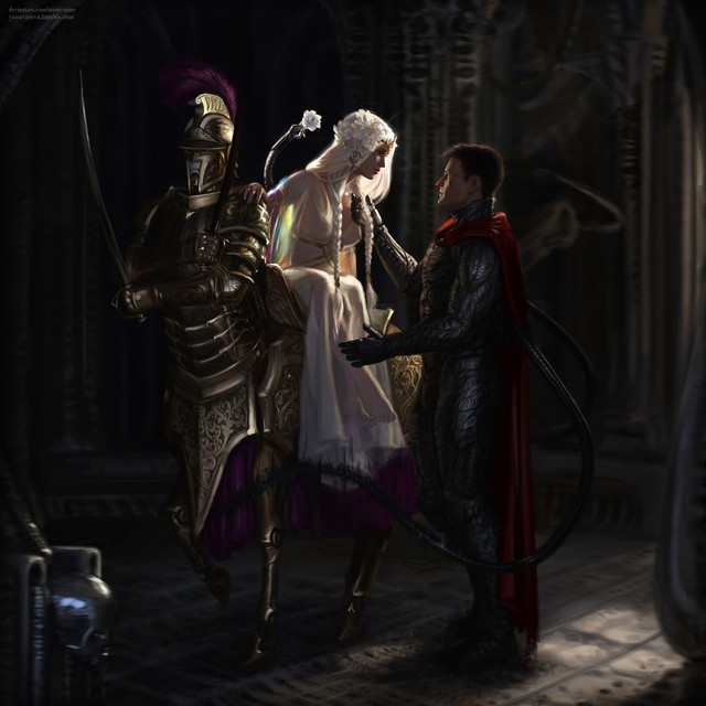 And the other entity, not going to lie that I'm making increasingly more elaborate appearances for her to see what's the limit before it becomes unfeasible to paint by hand. Her previous venture into looking like a normal person was this www.deviantart.com/memymine/ar… but her stable physical form is actually this www.deviantart.com/memymine/ar… .