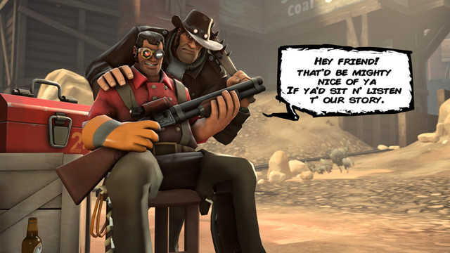 You know, the more I see these two characters I not only wish more that I had a male sibling I could actually spend dime with like this, but I also wish I could even remotely create characters this real feeling and lovable as they are. These guys really are the two best original characters made with TF2 bases I've ever seen. What actually inspired you to make them, if I may ask? In fact, what inspires you to make any of the unique characters you make with TF2 characters?