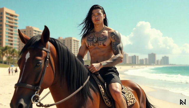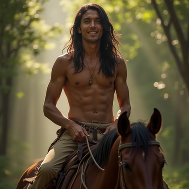 #beach #gay #guy #handsome #homoerotic #horse #hunk #male #man #muscle #nativeamerican #nature #sensual #shirtless #aiart