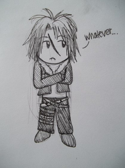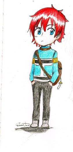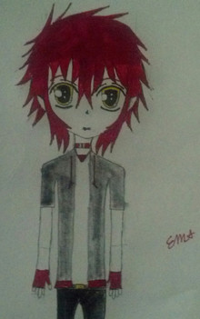 Another chibi-fied Fruits Basket character, this time it's Kyo. x3 I don't know anyone in the fandom who dislikes this character. He's awesome. And adorable.By the by, I'm sorry, the rest of the Fruits Basket characters I'm drawing are slightly different than my Kisa Sohma drawing...but I sketched everyone but Akito, Hiro, Saki, and Arisa tonight, so they're all consistent. I have to ink and color everyone else, and I haven't started on Aki and the others mentioned above. I apologize for the inconsistencies in my art...*has a Ritsu Sohma moment*
