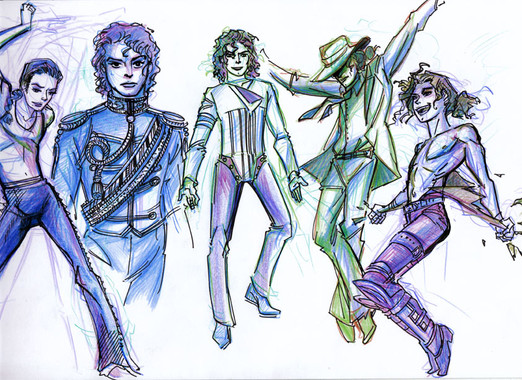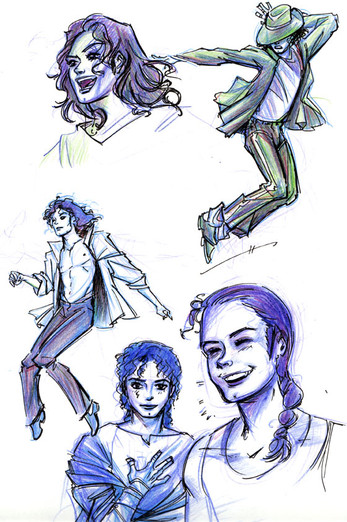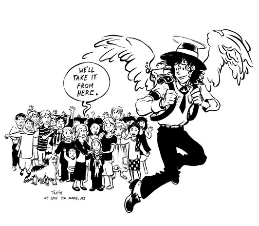 Really good lineart. Michael Jackson is actually one of my favorite performers. Funny how you have a cute little chibi right on top of the serious realistic looking drawings.
