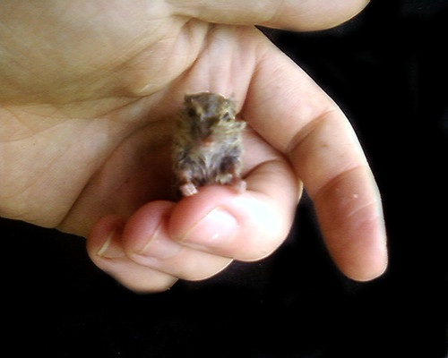 A few days ago I mentioned that my family's pet squirrel 'Colonel Clink' died, we found out the next day that the Colonel was a female, and a mother at that. Four babies slowly emerged from their nest in search for food, and damn they are cute.This is one of many photos I took of them. This little guy was the bravest of them. I sat and played with the for quite awhile. We released them deeper into the woods yesterday, they were all eating and were searching for food, so I think they'll be ok.