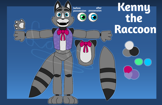 huh, i have a raccoon animatronic for my own made up fnaf restaurant... this is really cool, very clean line art as well. the only thing is, why is pretty much all the suit like the rest of the animatronics, while the tail is fluffy?