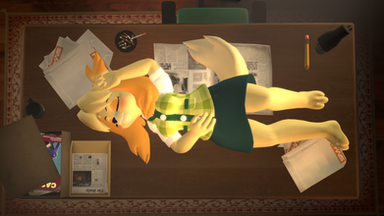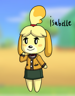 #fanart #videogamefanart #nintendo #animalcrossing #dog #bell #doodledrawing #eyes #female #fur #furry #girl #hair #isabelle #legs #outdoor #practice #simplebackground #skirt #wall #animal_crossing #isabelle_animal_crossing