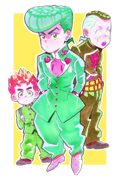 Josuke is a good boy! I love him too. He's a super fun and entertaining character and his expressions are so good XD His goofiness mixed with seriousness really set the mood for DIU and it was excellent. He has a great vibe to him and I love how he interacts with all his friends and family so much.