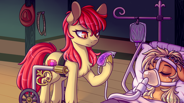 Long, wispy eyelashes swayed unhurriedly open, to reveal her tired brown eyes. Laura glared up at a white sectioned ceiling, unfamiliarly. At the moment, she wasn't able to process that she wasn't at home in her bed. This could have been a hallucination, as that theme was becoming increasingly common as of late. She could recall picturing her kindly Husband standing beside her, smiling as he usually did, and the thought in turn made her flash a small happy smirk. "Rob...ert..." She hummed raspily, her eyes closing again.Spongebob sat nearby in a chair pressed against the far corner, keeping himself from being excitable. As much as he was glad she was okay, he still didn't want to startle her. "She's been going in and out for days now... I hope she'll wake up for good soon...." He stressed in silence, not showing it in his tone. He dropped his gaze to his hands, watching the fingers twitch nervously against his will. The man sighed, standing himself up to pace around the room. He swiped his hand down his brow and unshaven cheek, staring out the small window in the door of her hospital suite. Only the sound of her steady heartbeat could be heard despite the bustling employees outside the room. Lucius paced as well, with his tail swaying in tandem with the sound of her heart monitor.