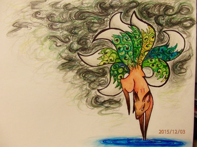 I love the details you put in the vines and leaves and the way how you colored this, those are some lovely warm colors. That effect of the translucent wings is awesome!Β Β