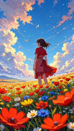 #digitalart #sky #digitalpainting #wallpaper #anime #characterdesign #cartoon #portrait #beauty #fantasyart #blue #clouds #dreamy #dress #fantasy #field #girl #landscape #nature #poppy #red #serene #vibrant #art