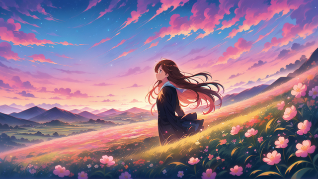 #digitalart #anime #cartoon #digitalpainting #sky #animegirl #wallpaper #fanart #characterdesign #pixelart #blue #clouds #dreamy #dress #fantasy #field #girl #landscape #nature #poppy #red #serene #vibrant #art