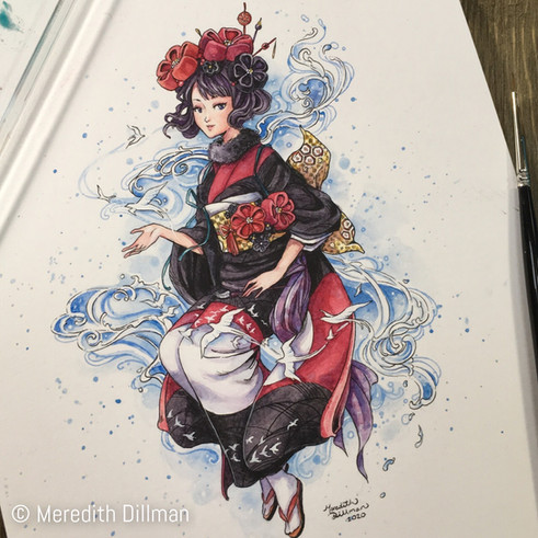 I saw her art at the first convention I went to in college. That was when I realized that watercolor was OK and you didn't have to paint loose watery landscapes and flower scenes to use it.