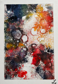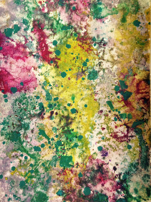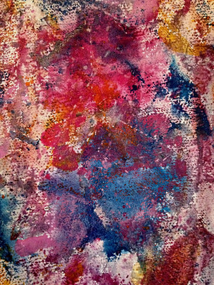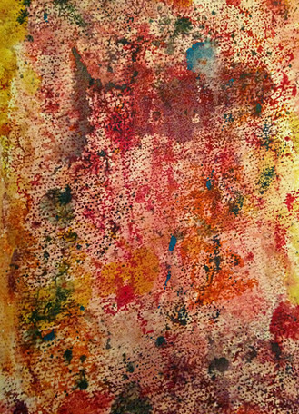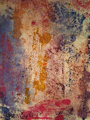 Your layering of acrylics is just interesting as hell. I like the step-away from the rubrical palette, (oh yes I did.) These colors have their own warmth.
