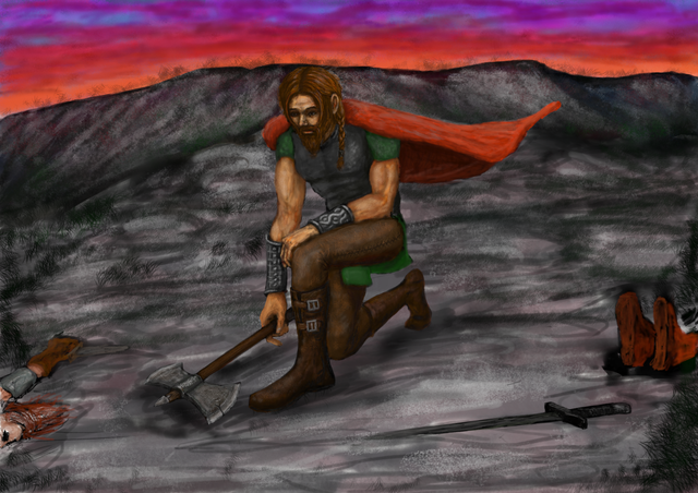 This might be the aftermath of the Battle of Maldon - or any similiar conflict somewhere between 700 and 900 CE.