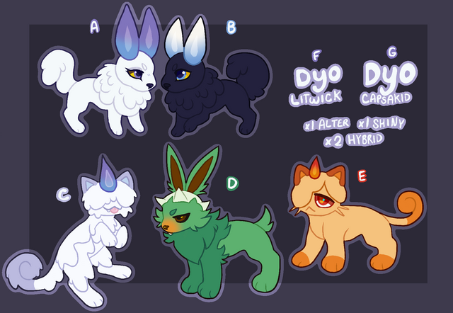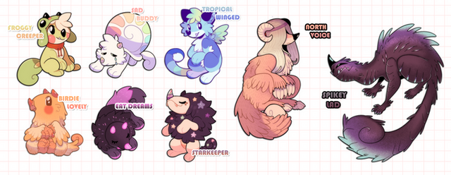 hi !!!!!! these are some adopts i never got around to reselling after the original offerers backed out on me,,,,, so here they are againthey're $25 USD each and if they don't sell soon they're going to a friend