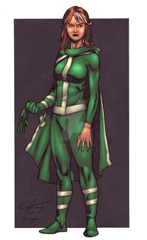 Wow, Merides!! You did a fantastic job with the colors for Rogue!!! They are entirely complementary!! Way to make a statement with the crispness and precision employed by a skilled brush!! Keep up the great work!! Rogue is my favorite of the X-Men ladies!! Your tribute is most fitting!!