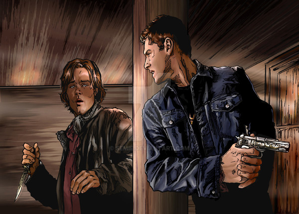 His request was to make a picture with him and the Winchester boys in action, so here it is hun, hope you like it