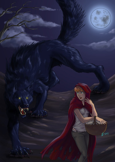 Never been a fan of LRRH but this is super bad ass. The wolfs eyes are amazing and Little Red looks hard core. Very nice composition and shading. Thank you for submitting to