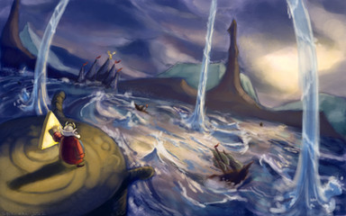 This is beautiful, I've never watched the movie nor even heard of the book so I can't tell what's really happening but this truly strikes me! The colours are lovely and I like the details on the thing he stands on! This reminds me I've never actually payed a visit to your gallery, but when I did I couln't help but to enjoy your work!