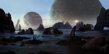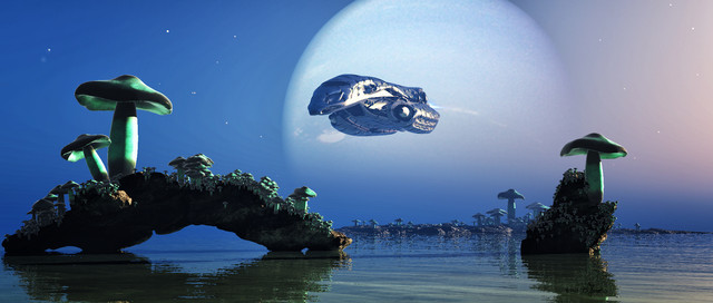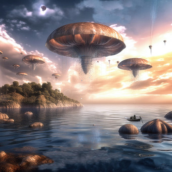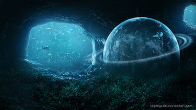 on their inspection tour around the rocks at the islands border they found one, which had opend up and was glowing from within... they came nearer activating their shield to take a closer look. What they didn't realize was, they were inspected too, from below the waterline...Related content