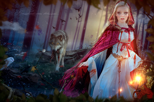 Doesn't she look like she's keeping something from us? Maybe the wolf isn't the villain of the fairy tale after all.